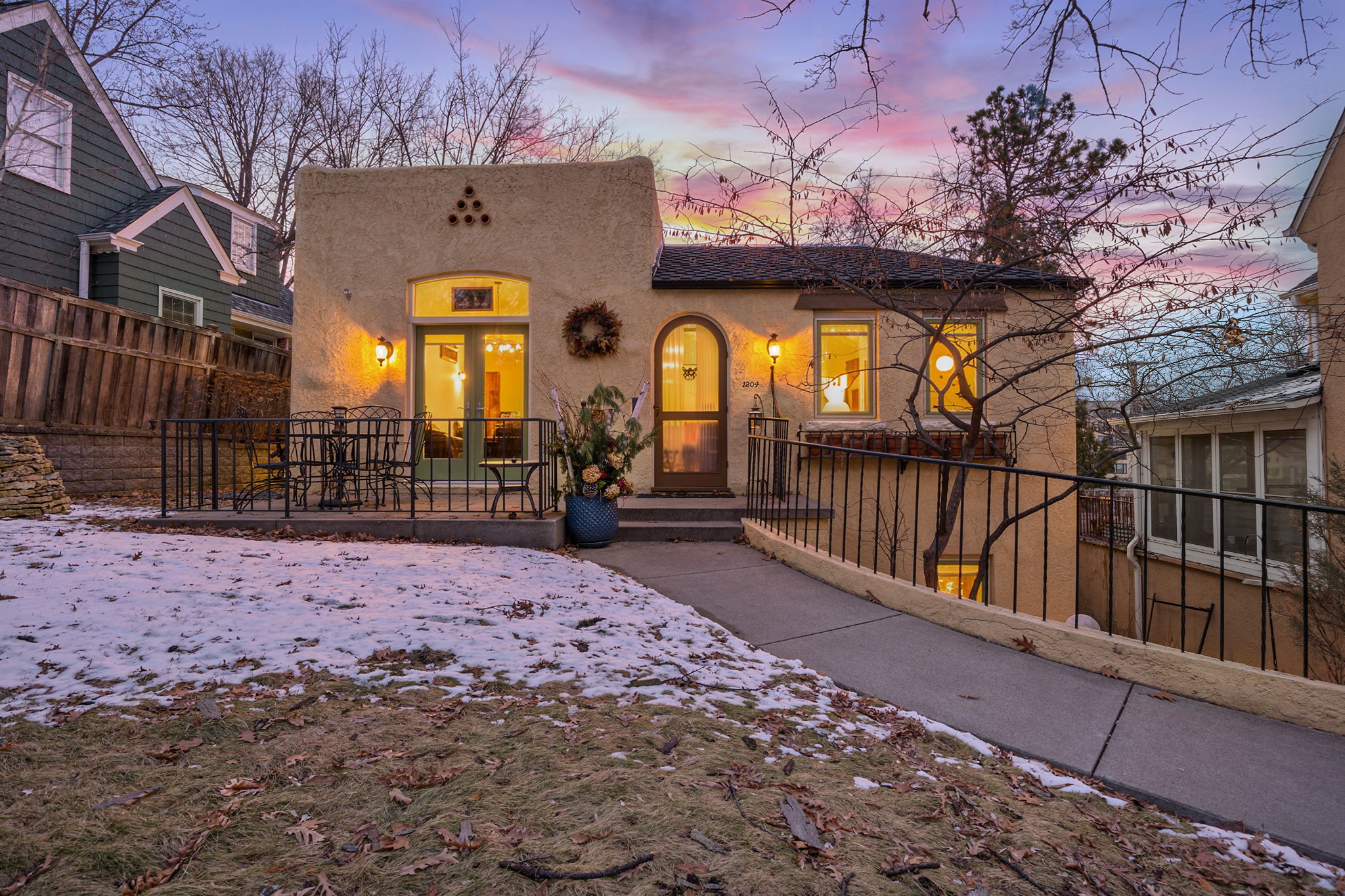 This storybook Mediterranean-inspired home is located in the highly sought-after Bryn-Mawr neighborhood just blocks from Cedar Lake trails and beach and minutes from Theodore Wirth Park and the Eloise Butler Wildflower Garden, offering easy access to miles of trails, nature and year-round recreation. The property features a rare rooftop deck with breathtaking Minneapolis skyline views and a 900 sq ft in-floor heated garage with workshop space, upgraded electrical panel and room for a future EV charger. Built in 1927, this light-filled home showcases timeless architectural details including arched openings, coved ceilings, a dramatic barrel vault ceiling and ornamental plaster accents. The living room features a travertine surround fireplace while the spacious dining area offers a wall of windows overlooking a beautifully landscaped backyard complete with a waterfall and private paver patio. The dining area includes a custom buffet and cozy heated floors. The kitchen features maple cabinetry, built-ins, stainless steel appliances and a new gas range. This home is ideal for entertaining with generously sized rooms and exceptional storage rarely found in homes of this era. The layout includes three bedrooms, three bathrooms and a den that could easily serve as a fourth bedroom by adding a door to the vaulted lower-level family room. The private primary suite includes an ensuite bath and walk-in closet while the second main-floor bedroom also works well as a home office. The lower level features excellent ceiling height, gas fireplace and a private entrance, creating ideal space for a guest suite, multigenerational living or short-term rental opportunity. Fresh paint, new main-level carpet and over $335,000 in improvements since 2008 reflect thoughtful long-term investment and pride of ownership. Conveniently located near Cedar Lake, downtown Minneapolis, Uptown, the West End and Bde Maka Ska.